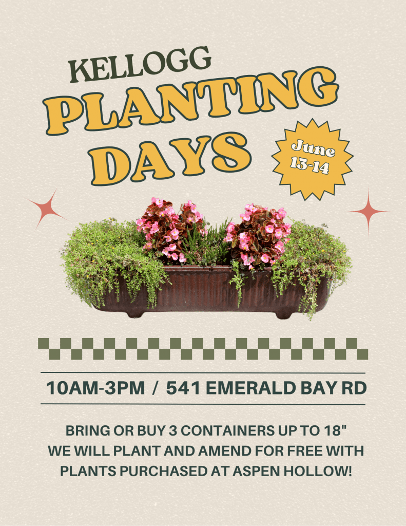Join us at Aspen Hollow for the annual Kellogg Planting Days, and get your very own custom planted arrangement! 🤩